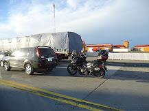 Para diminuir o impacto do vento, que comprometia a estabilidade da moto, resolvemos tirar um dos pacotes de cima do baú traseiro, distribuindo o peso entre as laterais. Aparentemente, a moto ficou mais estável e conseguimos rodar menos apreensivos.